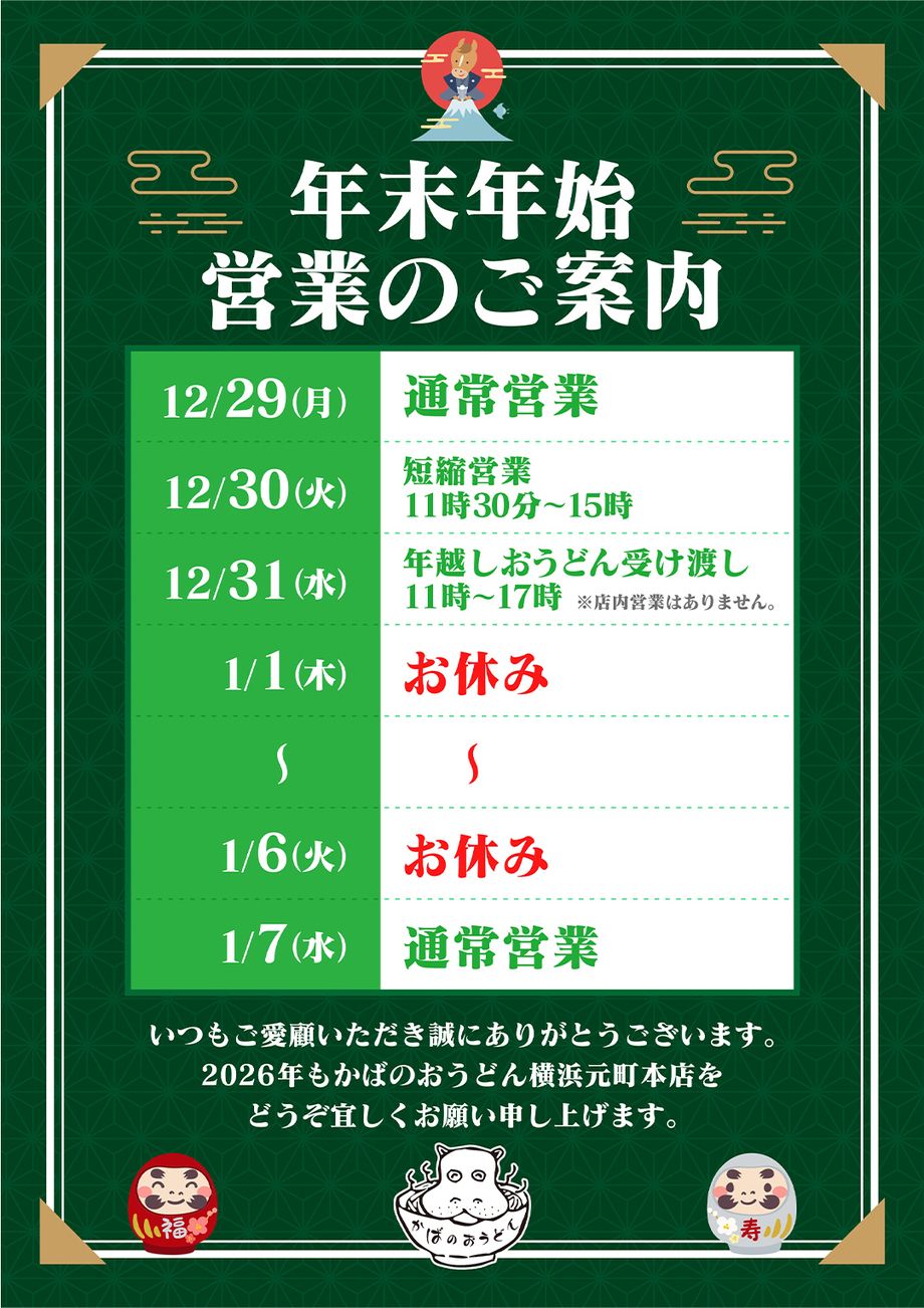 平素より、かばのおうどん 横浜元町本店をご愛顧いただきありがとうございます。